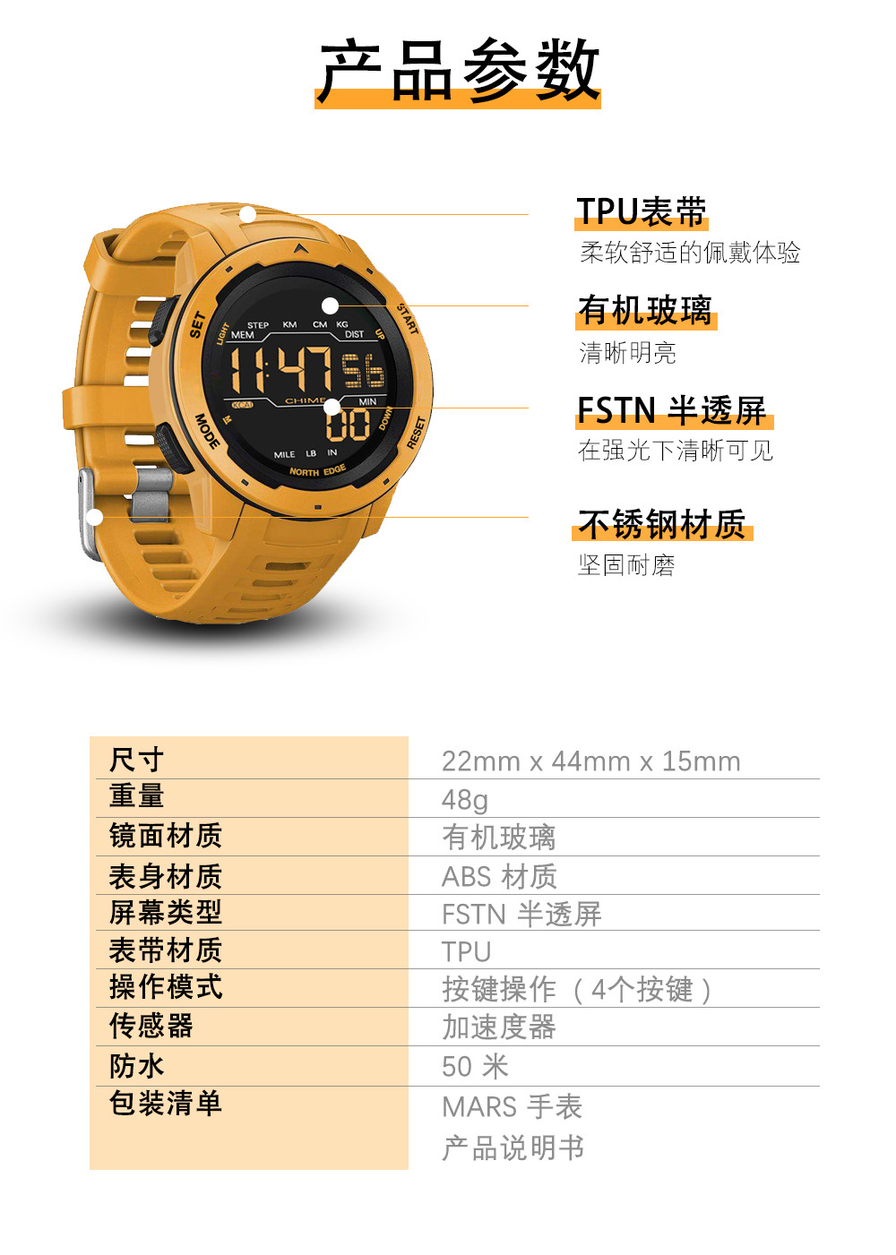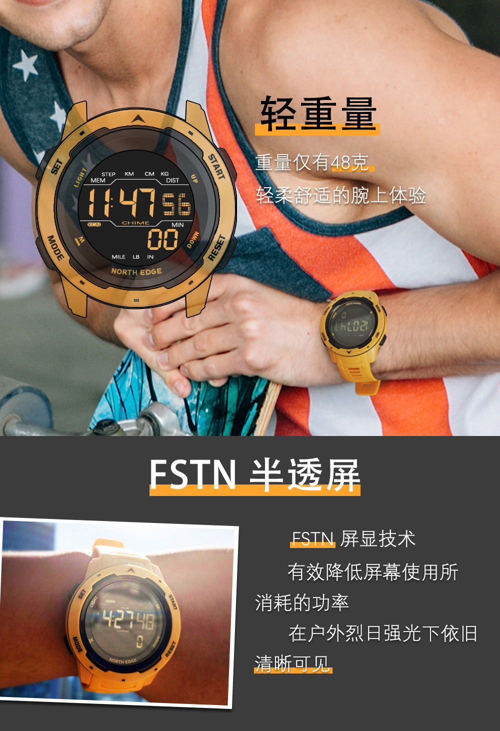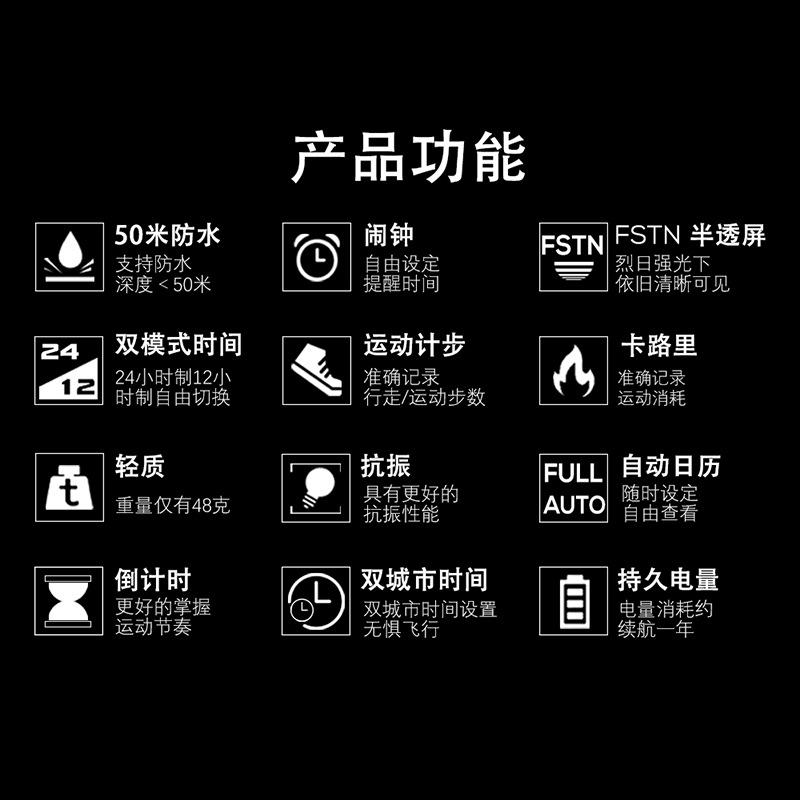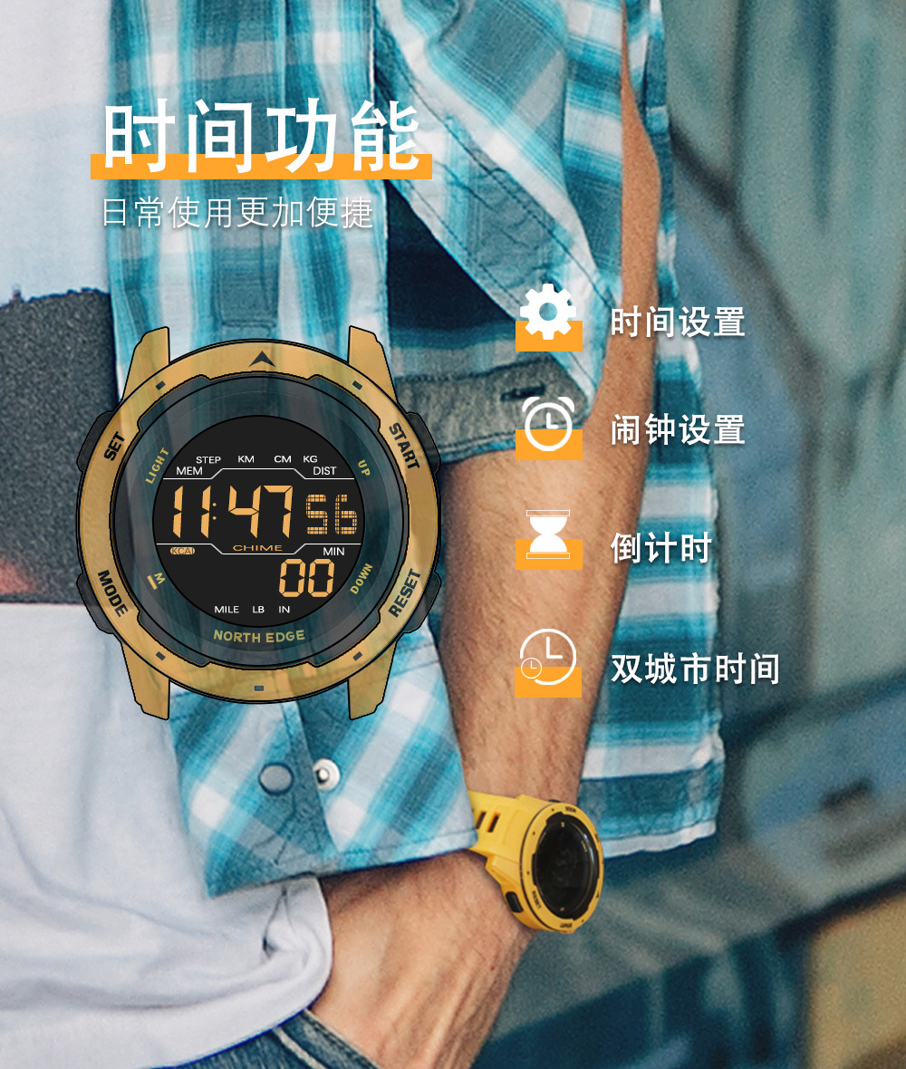 户外運動防水智能時尚手表鬧鐘計步器里程卡路里多功能手錶